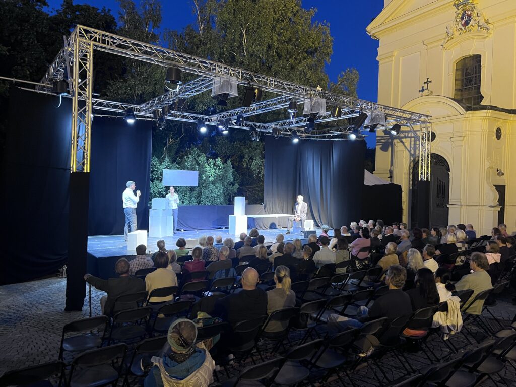 Wissenschaft als Machtinstrument. Wahrheit als Risiko. Verantwortung als Zumutung. Dürrenmatts kluge, bitterböse Komödie verdichtet sich vor der Rodauner Bergkirche zu einem nervenaufreibenden Open-Air-Erlebnis, das beklemmend aktuell wirkt und lange nachhallt.