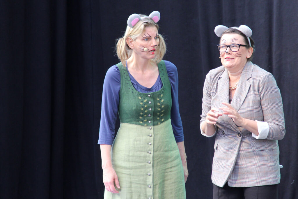 Gespielt haben wir Dürrenmatts „Besuch der alten Dame“, von Reza „Gott des Genetzels“ und Pinters bitterböse Komödie „Betrogen“. Für Kinder gab es das Kaspertheater „Plitsch, Platsch, Plum“, das Grimm-Märchen „Der Teufel mit den drei goldenen Haaren“ und „Die Stadtmaus und die Landmaus“ zu sehen.