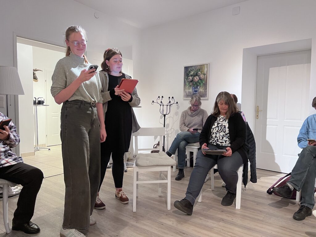 Auch bei uns stand zunächst das gemeinsame Lesen im Mittelpunkt. Doch schon bald haben wir den klassischen Sitzkreis verlassen. Wir sind aufgestanden, haben begonnen, Szenen auszuprobieren, Wege zu gehen, Beziehungen körperlich zu denken. Erste Dialoge wurden nicht nur gesprochen, sondern gespielt, hinterfragt und variiert. Ein bewusst offener Prozess, in dem vieles erlaubt ist – und genau daraus entstehen oft die spannendsten Ansätze.